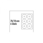 LOGO ETYKIETY NA CD 78/18MM, A4, MATOWE, BIAŁE, 6 ETYKIETY, 140G/M2, PAKOWANY PO 10 SZT., DO DRUKAREK ATRAMENTOWYCH I LASEROWYCH