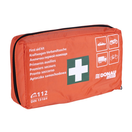 - Apteczka samochodowa DONAU SAFETY, materiałowa, DIN, pomarańczowa
