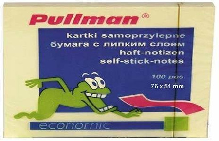 Karteczki samoprzylepne Pullman P0024 w żywym kolorze żółtym to praktyczny bloczek karteczek w formacie 50 × 75 mm. Zestaw zawiera 100 kartek, które sprawdzą się przy codziennych notatkach, przypomnieniach i oznaczaniu dokumentów, pomagając Ci lepiej organizować pracę i zadania.